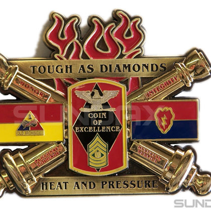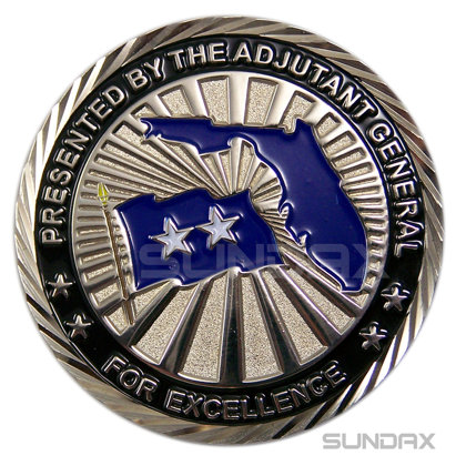 Explore our collection of custom challenge coins, designed for military units, law enforcement, corporate awards, sports teams, and special events. Our coins are available in a variety of finishes, edge styles, and engraving options, including: